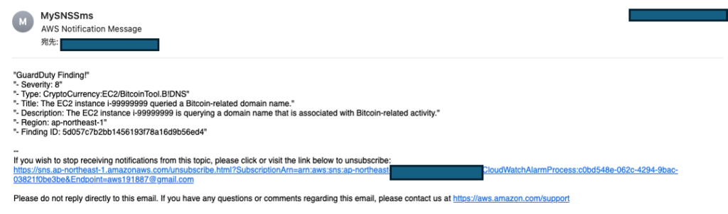 GuardDutyの通知メールはデフォルトのままだと情報量が多く、読みづらい場合があります。